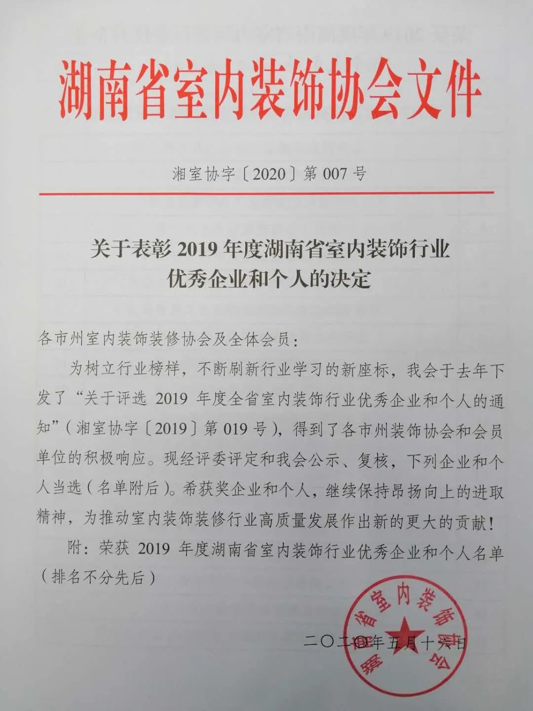 400-185-6711热烈祝贺开云足球(中国)荣获2019年度湖南省室内装饰行业优秀装饰材料供应商!!
