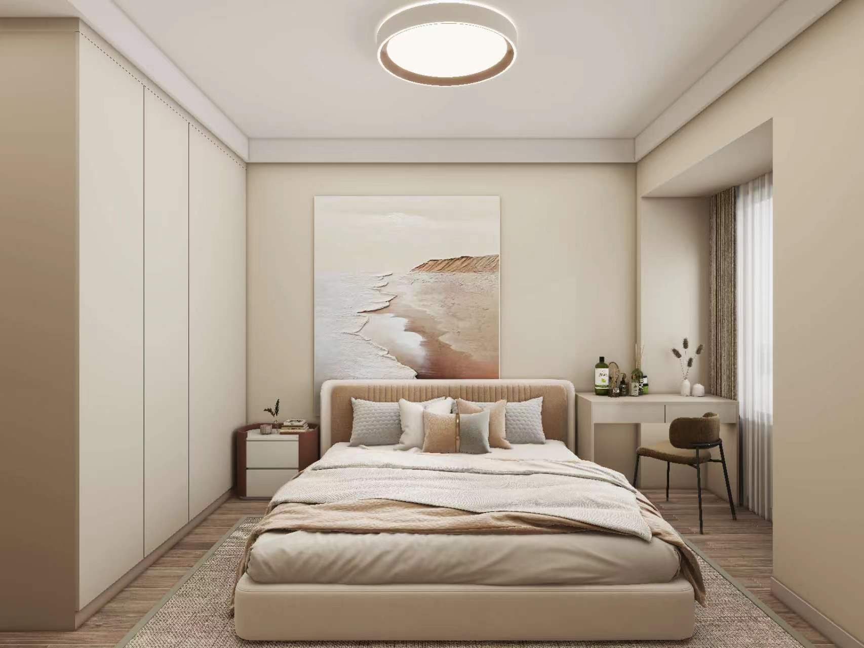 此外,我们的装修效果方案还注重细节处理。每一处细节都经过精心设计,无论是墙壁上的挂画,还是沙发上的抱枕,都与整体设计风格相得益彰。这种对细节的关注,让你的家更具品质感。