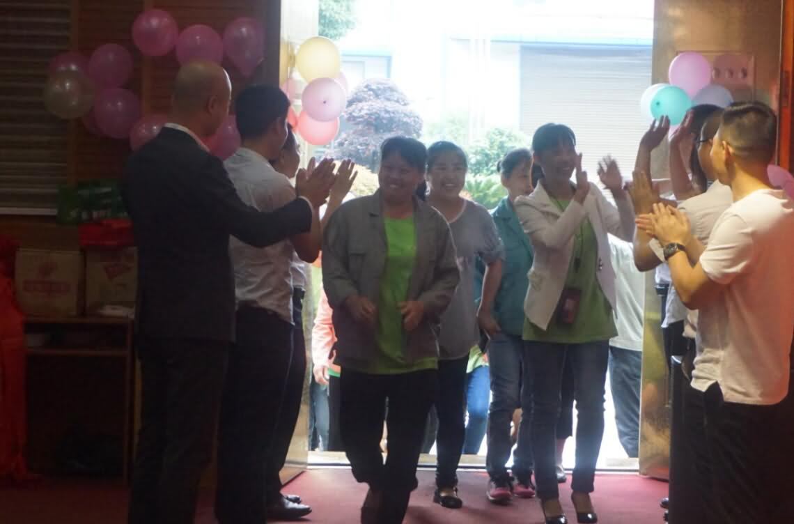 寰宇股份5月份标杆合影(左三)丁仙妹(左四)周庆梅(左五)汤世娥(左六)罗佳佳