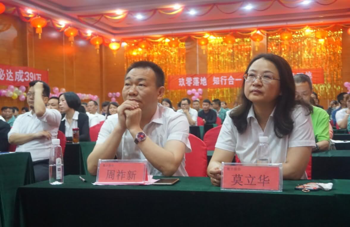 本次落地启航活动寰宇股份董事长周祚新,董事长助理莫立华亲自到场,并且专程邀请到威曼国际服饰落地咨询管理公司董事长袁靖(左二),怀化多喜来食品有限公司董事长李志诚(右二),玖零股份湖南玖零王紫荷老师(右一)以及汤勇老师(左一)为我们的落地起航加持正能量。