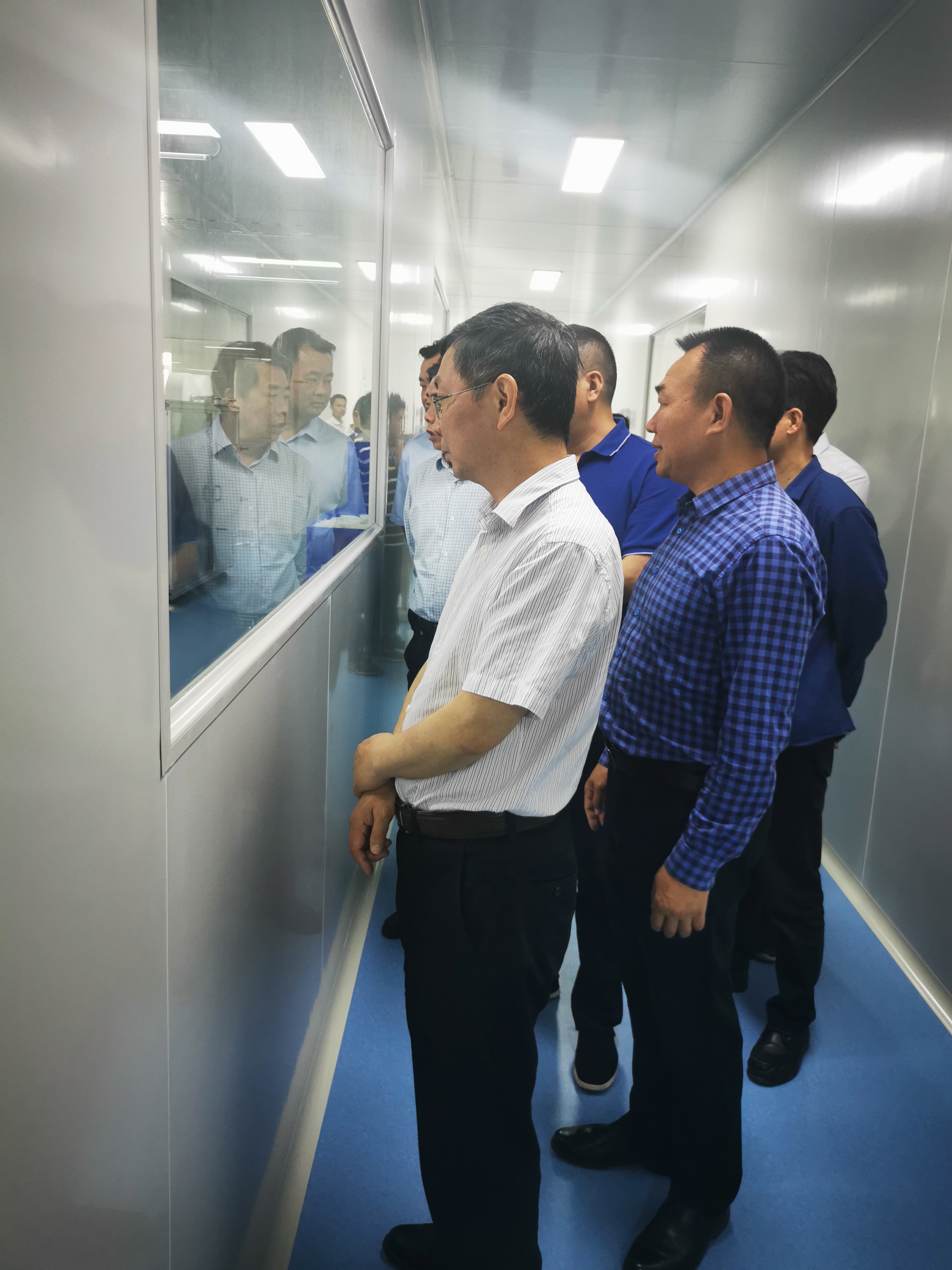 副书记陈恢清一行在董事长周祚新陪同下参观口罩生产无尘车间